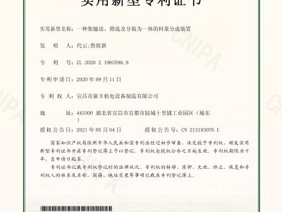 實用新型專利證書《一種料果分級用高效輸送并返料裝置》