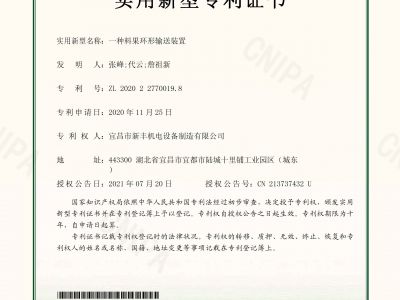 實用新型專利證書《一種料果環(huán)形輸送裝置》
