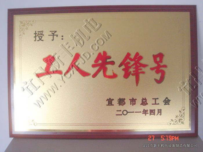 4月27日,宜都市舉行2010年度“爭當先鋒號、建功新宜都”勞動競賽活動表彰大會,宜昌市新豐機電設備制造有限公司結(jié)構(gòu)車間被宜都市總工會授予“工人先鋒號”稱號,宜昌市新豐機電設備制造有限公司線切割成型加工員工辛世蘭獲“革新一項操作方法獎”、宜昌京都電子科技有限公司技術(shù)部部長薛傳獲“創(chuàng)造一批優(yōu)質(zhì)產(chǎn)品獎”…