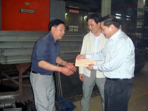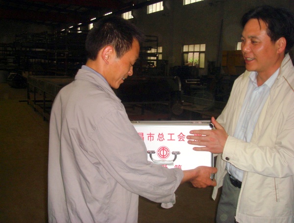 4月23日下午,宜昌市委常委、市總工會主席劉學(xué)甫在宜都市委副書記、市長羅聯(lián)峰,市委常委、市委宣傳部長、市總工會主席王世斌的陪同下,到宜昌市新豐機電設(shè)備制造有限公司生產(chǎn)一線慰問困難職工陳鳳友,與他親切交談,詳細詢問了陳鳳友的身體情況、工作情況及家庭情況,送去慰問金500元。并代表湖北省總工會、宜昌市總工會到生產(chǎn)一線為職工贈送“關(guān)愛箱”。