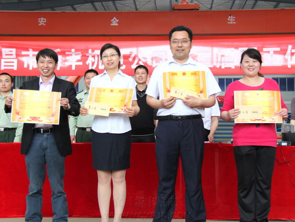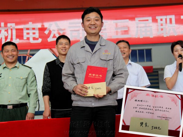 最后,張總為獲得宜都市勞動(dòng)競(jìng)賽“先進(jìn)個(gè)人”稱(chēng)號(hào)的張雙明同志頒獎(jiǎng)。