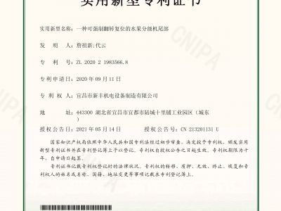 實用新型專利證書《一種可強制翻轉(zhuǎn)復(fù)位的水果分級機尾部》