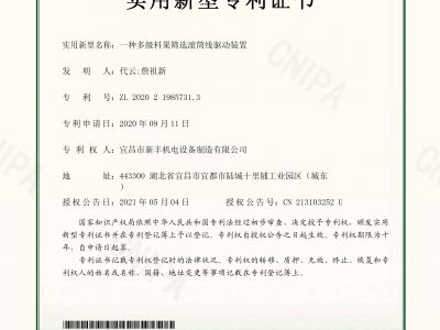 實(shí)用新型專利證書《一種多級料果篩選滾筒線驅(qū)動裝置》