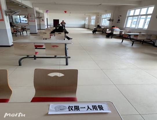 建立復工人員管理臺賬,密切配合上級疫情防控工作指揮部工作,每天按時向企業(yè)所在村社區(qū)上報復工人員體溫監(jiān)測記錄。上班人員全程佩戴好口罩,規(guī)范食堂用餐制度,排隊間隔1.5米,實行“一人一桌”用餐制,確保員工用餐安全。